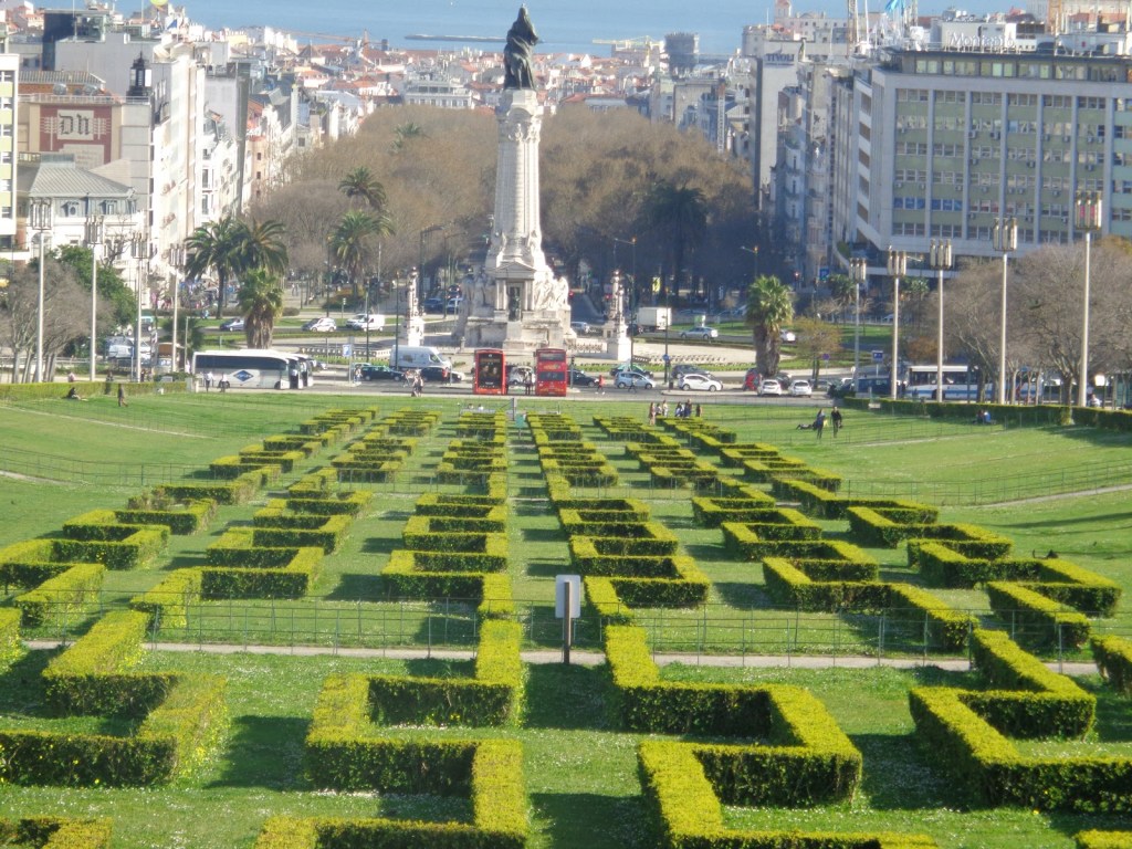 No retângulo localizado numa das colina da cidade que tem sete, encontramos do sul essa gigantesca estatua do Marques a dominar a rotunda e do lado norte deparamos com um enorme bandeira que um dos transeuntes nos tentou explicar que era a maior bandeira portuguesa do mundo (que e grande e!). Essa mesma bandeira faz parte do monumento da liberdade que relembra o 25 de Abril, com 4 enormes colunas, pedras e um pequeno lago, na Alameda Cardeal Cerejeira. Deste miradouro disfruta-se de uma das mais magnificas e espectaculares vistas de toda a Lisboa, deixando os nossos olhos divagar ate ao Rio Tejo levando-nos lentamente pela Avenida da Liberdade em direccao ao rio e desviando periodicamente pelo aos outros bairros. No parque existem varias estufas e um excelente restaurante, onde disfrutamos de um excelente almoço e serviço. Ao pé do Marques foi construído um túnel com o mesmo nome que liga as Amoreiras.