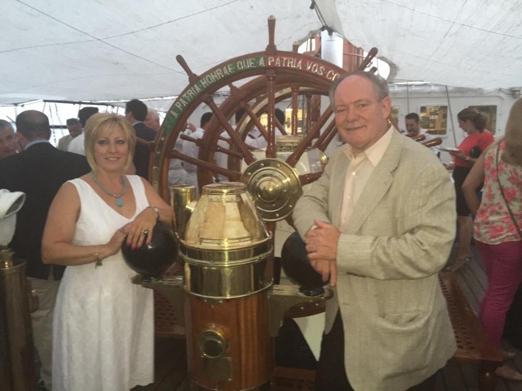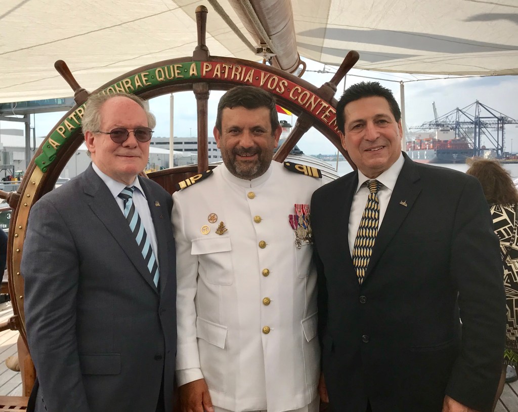 O NRP Sagres e comandado pelo capitao de fragata Antonio Mauricio Camilo, natural de Lisboa que ocupa esse cargo desde 2017. Homem de forte porte e simpatico. Conheci-o, e com quem confraternizei, na ultima viagem que fez aos Estados Unidos e que fomos convidados para as recepcoes aboardo. .