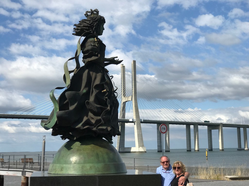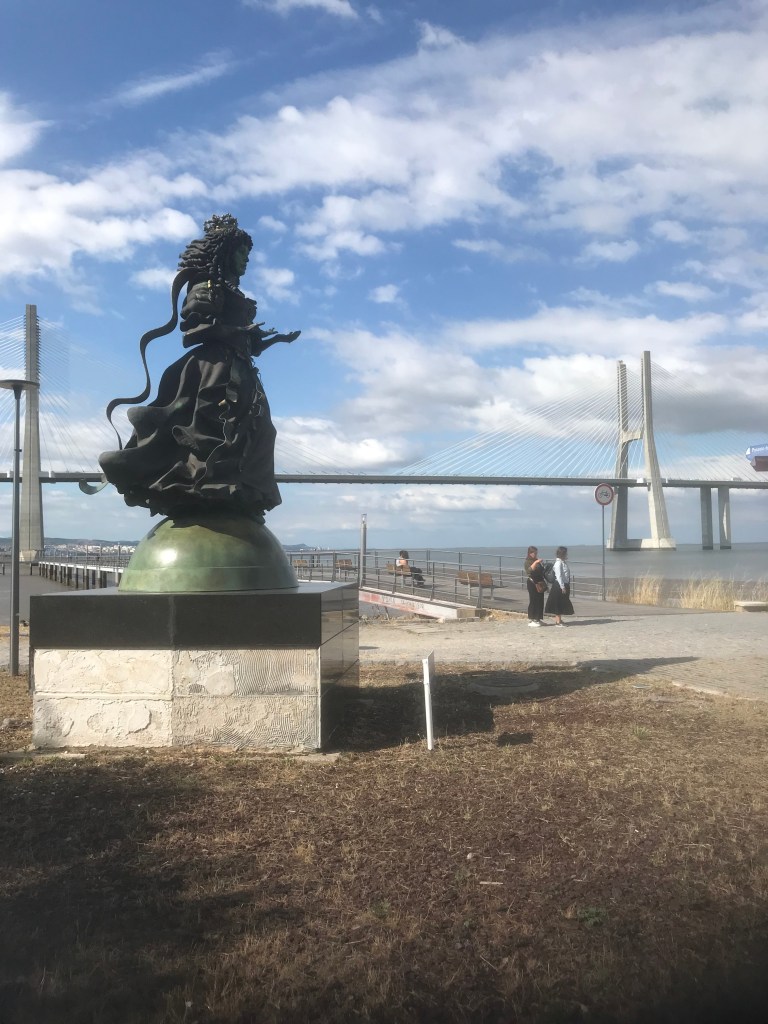 Uma nota na pagina do facebook do Amigo Antonio Pedro Faria, a residir na Guarda, Portugal, depois de muitos anos nos States, levantou a curiosidade sobre dois monumentos oferecidos a Portugal pela comunidade Luso Americana.Encontramos o Pedro em Lisboa, ele que sabe da historia também como nos, fomos procurar a estatua da Rainha Catarina de Braganca. Esta desterrada, solitaria, num canto de um parque amplo a olhar para a Ponte Vasco da Gama e a longitude do Rio Tejo, com um olhar triste e concerteza que nunca pensava vir ali parar, avistando ao longe o espaco da Expo e o novo hotel, quando todos os planos era para ver o Rio Hudson em NYC.